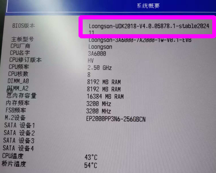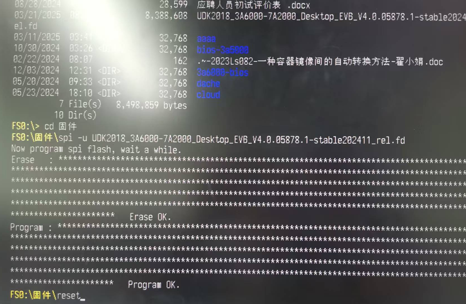 提前将需要使用的固件拷贝到U盘当中,这里以 UDK2018_3A6000-7A2000_Desktop_EVB_V4.0.05878.1-stable202411_rel.fd 为例。