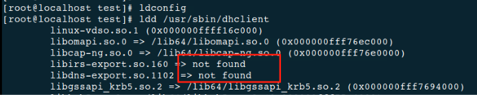 (4)ldd /usr/sbin/dhclient,再次查看,动态库找不到