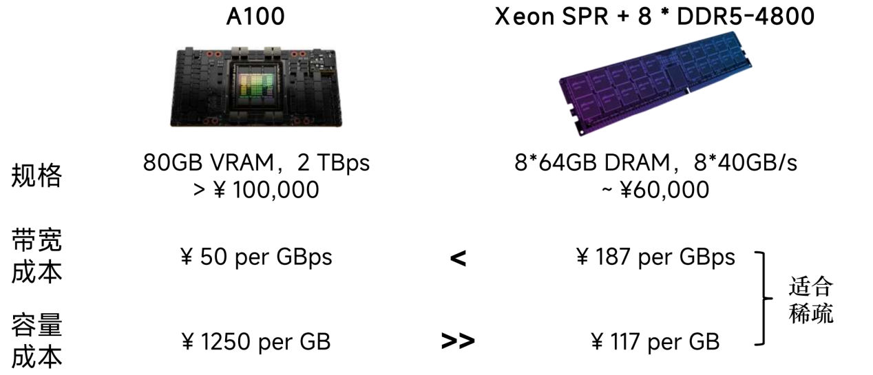 相比显存,内存容量大带宽低,适合稀疏运算。