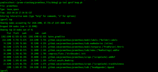 使用golang的调试分析工具pprof 分析崩溃前后的内存使用情况及堆情况,具体如下: