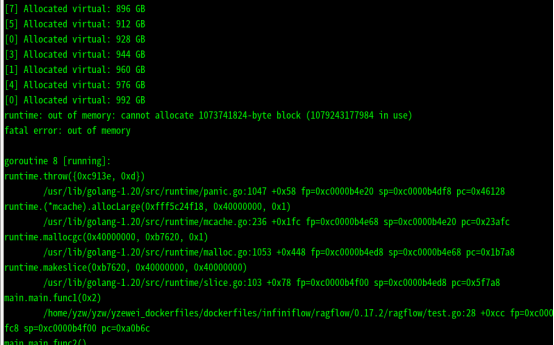 结论:可以看到在48位虚拟地址位的操作系统下程序正常被杀死,但在40位操作系统下程序出现了OOM,与客户的问题一致。