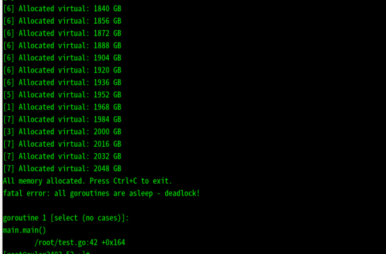 fmt.Println("All memory allocated. Press Ctrl+C to exit.")